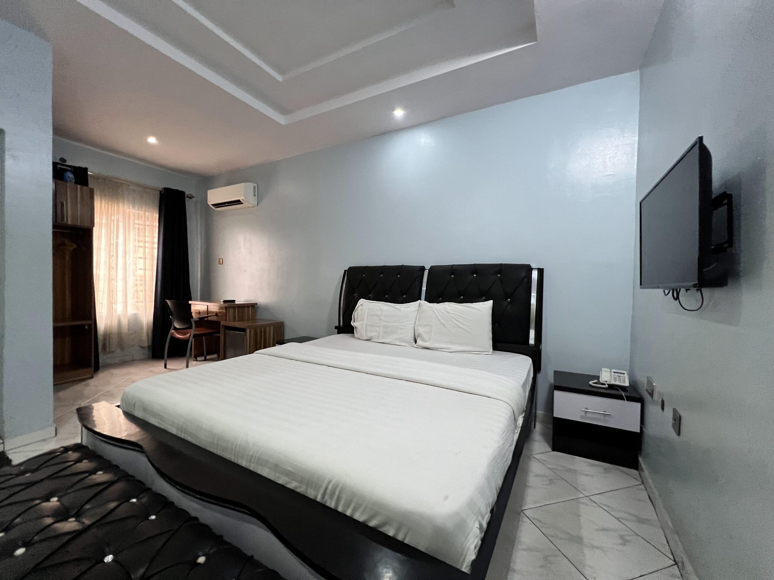Experience luxury redefined in our Premium Room, featuring exquisite furnishings and deluxe amenities for a memorable stay · Book Now +234 809 111 0486 | +234 803 246 0061 · Address: 91 Isiba Oluwo Street, off Orelope St, Egbeda 100269, Lagos